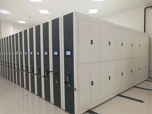 密集柜主要由軌道、底座、立柱(板式)、擱板、掛板、側(cè)靠板、背靠板、頂板、防塵板、護(hù)板、門(mén)板、傳動(dòng)機(jī)構(gòu)、防傾倒、防震、防塵、防鼠、制動(dòng)、緩沖、目錄卡及傳動(dòng)裝置、密封裝置組成: